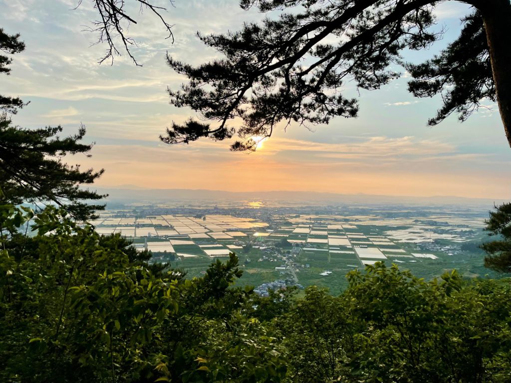 真人山を登るためのトレッキングコースも用意されており、緩やかな山を登ると山頂からは美しい田畑を望むことができます。美しい景色を眺めながらいただくコーヒーは至福。