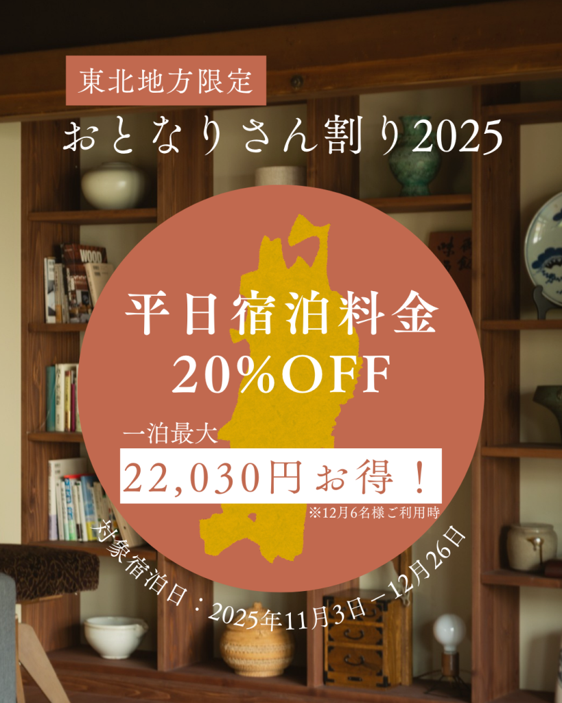 ◎平日宿泊料金が20%OFFになるキャンペーン「おとなりさん割り」始まります!